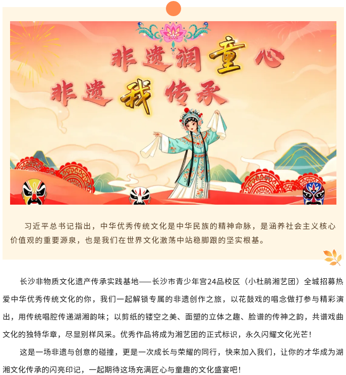 【24品校区招生】“非遗班的少年”2025年戏曲进校园公益活动,小杜鹃湘艺团寻找热爱优秀传统文化的你!