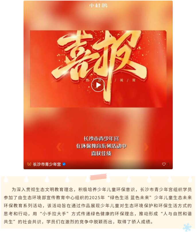 长沙市青少年宫在2025年少年儿童生态未来环保教育系列活动中喜获佳绩