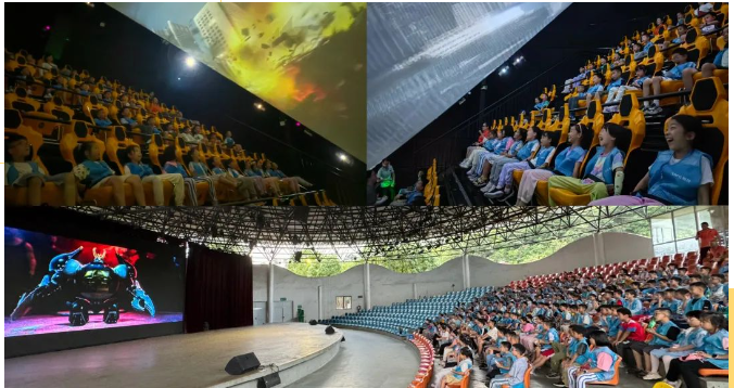 除了紧张的学习和比赛,精彩纷呈的实践活动也让营员们开心不已。在鹰击长空航模课程上,孩子们了解了新中国战斗机的发展史,在主讲老师的指导下,大家亲手组装和调试仿真飞机,并成功让自己的“小战斗机”飞翔于蓝天之上。神奇的动感4D电影,先进的球幕投影技术让孩子们沉浸式体验了一把速度与激情。拓展基地铁索桥“闯关”区的体验则充分调动了孩子们的积极性,孩子们化身勇士,大展身手,飞渡高难度铁索桥。梦幻美好的旋转木马、震撼有趣的迫击炮、惊险刺激的空中飞椅、好玩解压的碰碰车等是“尖叫乐园”里最受孩子们喜爱的娱乐项目。而让孩子们最最期待的活动当属“水上乐园”和“捕鱼达人”,换上泳装、跳入水中,感受烈日炎炎下的一丝清凉,尽享自由与欢乐的时光。超“燃”的篝火晚会舞台上,孩子们用充满童真与活力的表演展现他们多才多艺的一面,火光映照着孩子们稚嫩的脸庞,大家笑着、跳着、闹着,尽情狂欢,一幕幕温情的瞬间,是集体生活的别样精彩。呦呦动物乐园里,美丽的孔雀见到孩子们的到来,从山上成群结队地飞来,鹿苑里的小鹿欢快活泼地跑来,尽情享受着孩子们的投喂,聪明伶俐的鹦鹉们在舞台上展示着他们的高超技艺,让人不禁拍手叫好。精彩纷呈的营地实践活动让孩子们在大自然中收获了知识,开拓了视野,解锁了不一样的精彩假期。