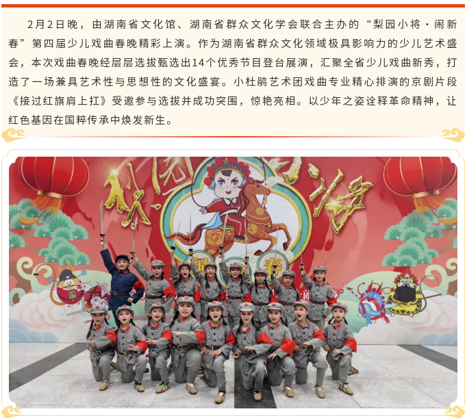 小杜鹃艺术团戏曲专业《接过红旗肩上扛》亮相省少儿戏曲春晚