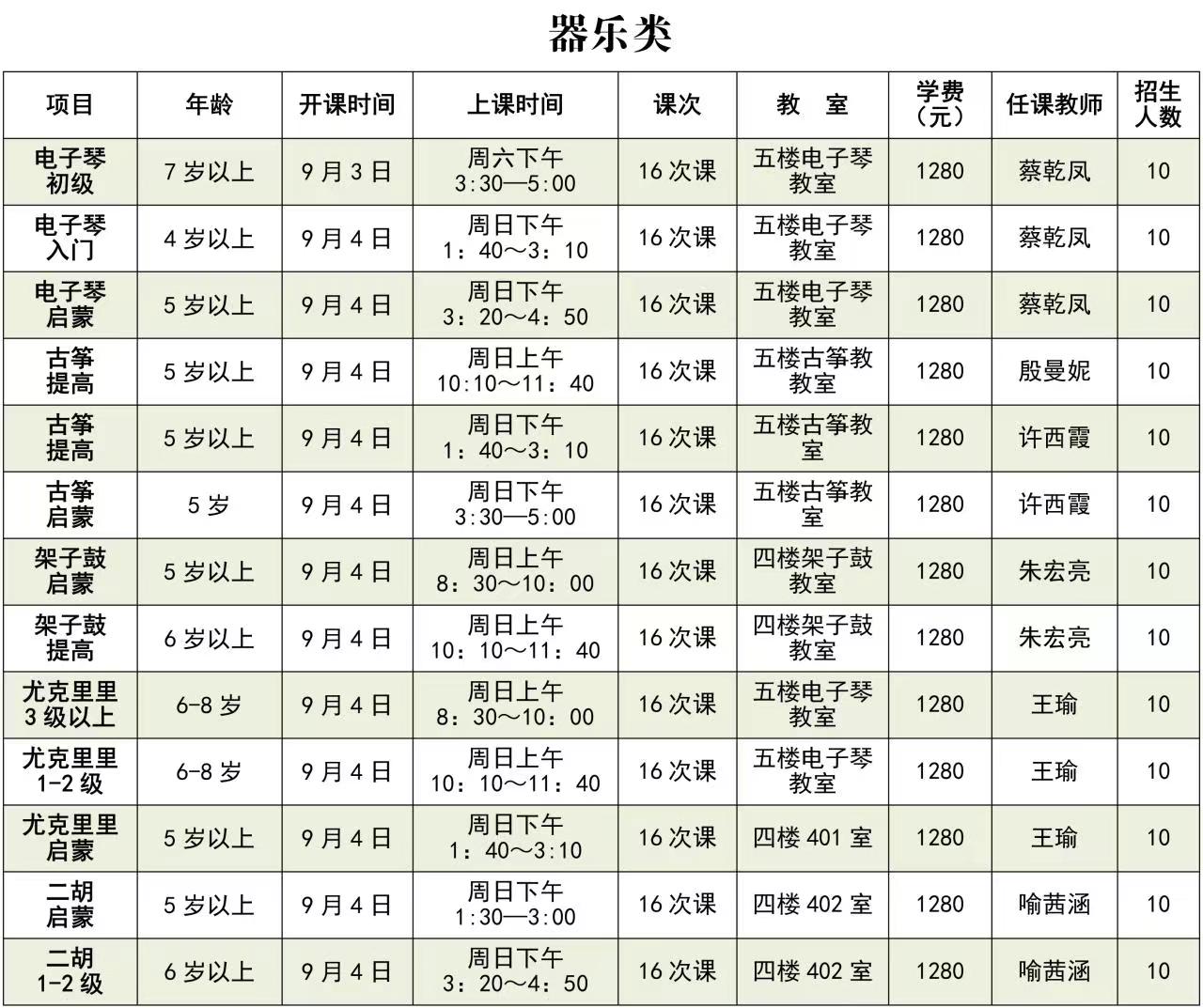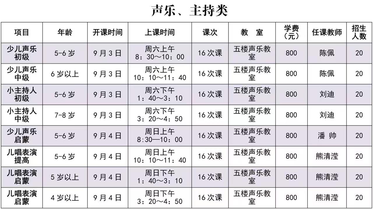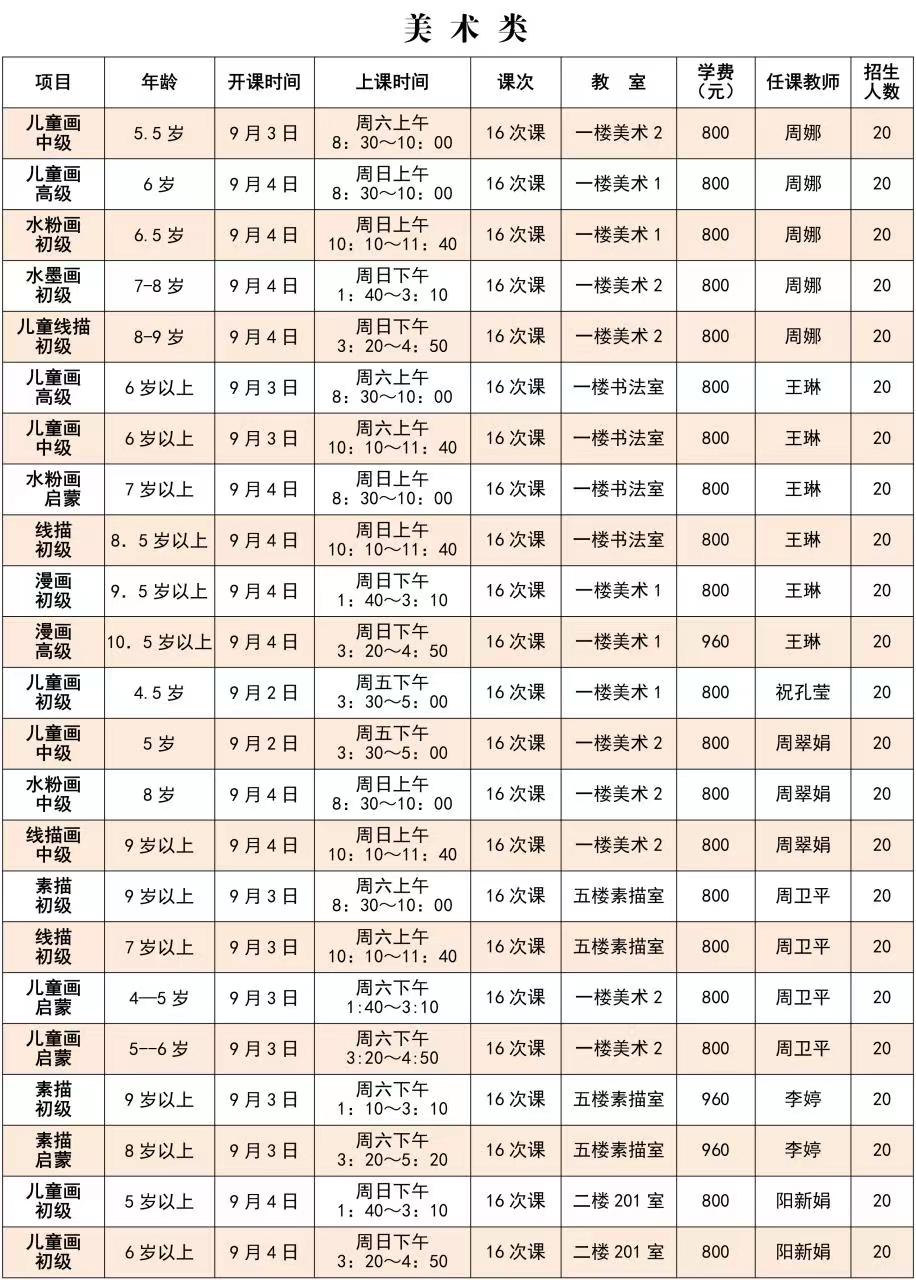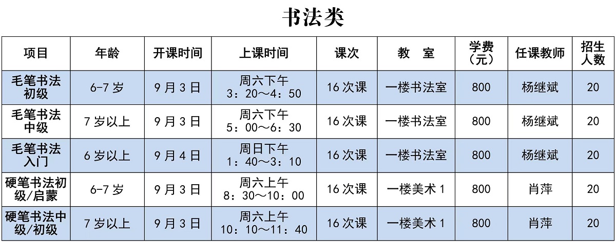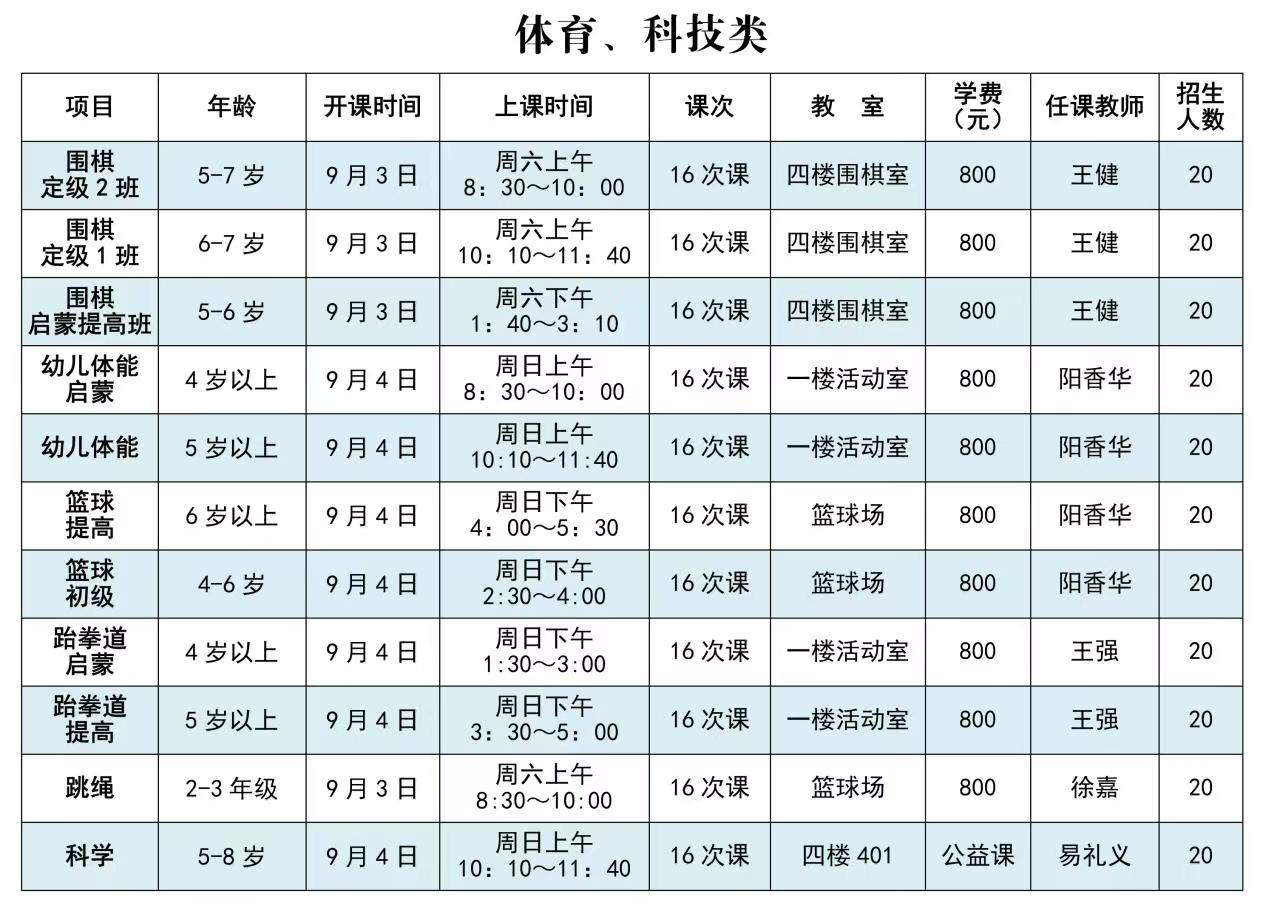 注意:秋季缴费周期为16次课,请家长为小孩慎重选班,缴费后无特殊原因,不退费、不转班。