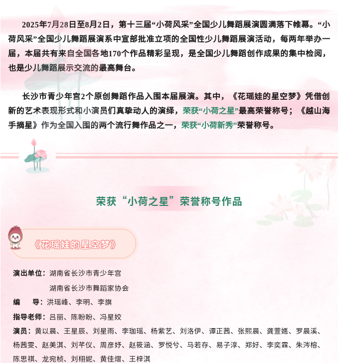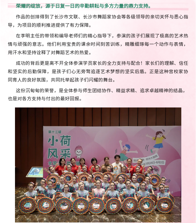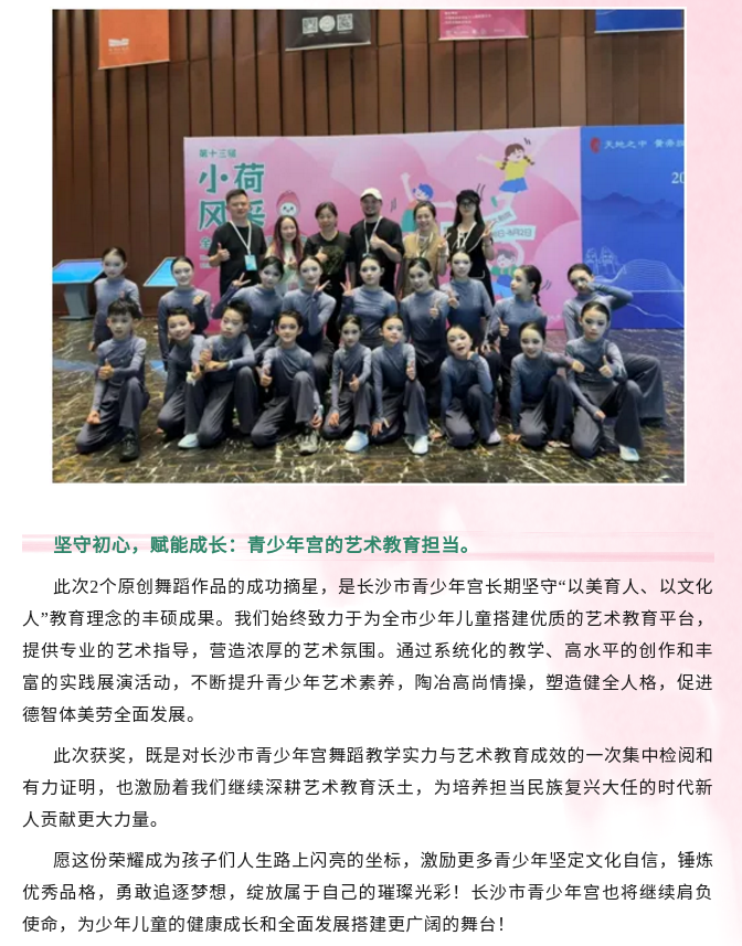 喜报丨长沙市青少年宫2个原创作品参加第十三届“小荷风采”全国少儿舞蹈展演载誉而归