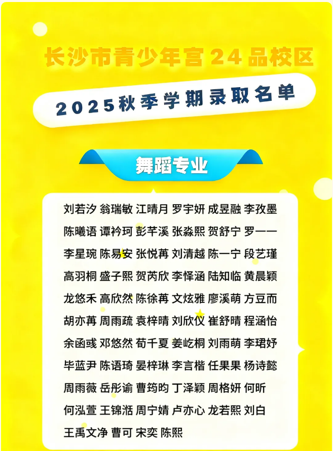 【24品校区放榜】长沙市青少年宫24品校区2025年秋季招生结果公布