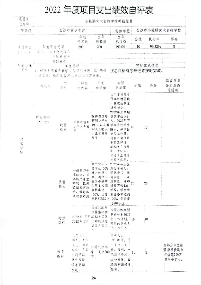 3、办班教学和场馆运营项目预算执行和绩效目标未按进度完成。我宫办班教学和场馆运营项目属于已收定支项目,一是,2022年受新冠疫情影响,青少年宫办班教学和场馆停止运营4月左右,导致办班教学和场馆运营收入减少,项目支出也相应减少;二是,2022年财政奖金发放方式改变,为保障我宫在编人员工资福利待遇,导致办班教学和场馆运营项目预算出现偏差。